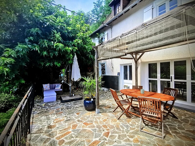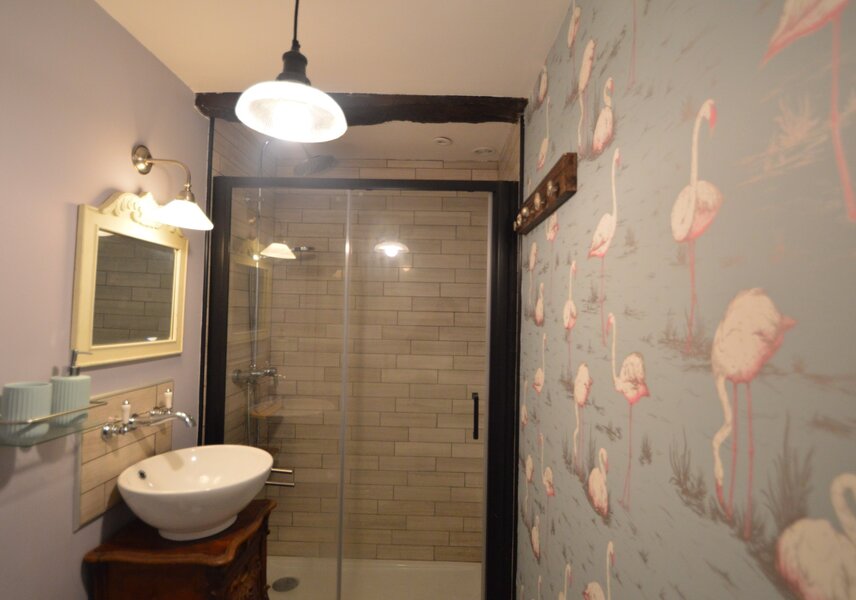 A large, south facing terrace leads through patio doors into the ground floor kitchen-dining room, with an attached utility room. In the summer, the terrace is the perfect area for relaxed outdoor dining.There is also bathroom on the ground floor. The first floor comprises a comfortable lounge with log burner, double bedroom and ensuite shower and WC. There are a further two double bedrooms on the second floor but please be advised, the stairs are steep! The gite has electric heating throughout, although this isn’t usually necessary between May and September.
