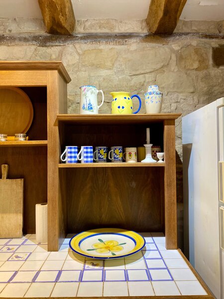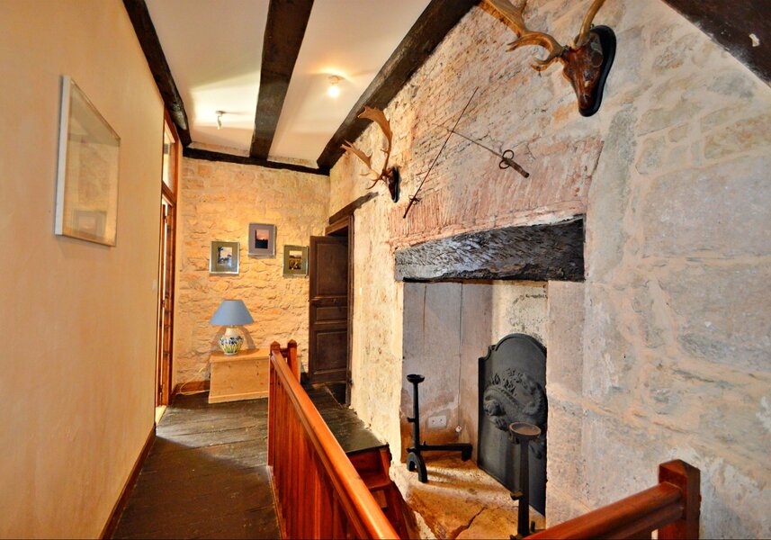 Interior layout Step through the private garden into the kitchen, the heart of the home. Terracotta floors, exposed stone walls, and sturdy wooden beams create an unmistakably rustic feel. This is a home where you can cook, eat, and gather together without fuss – simple, comfortable, and full of charm.